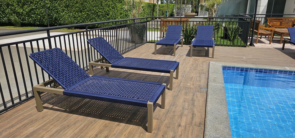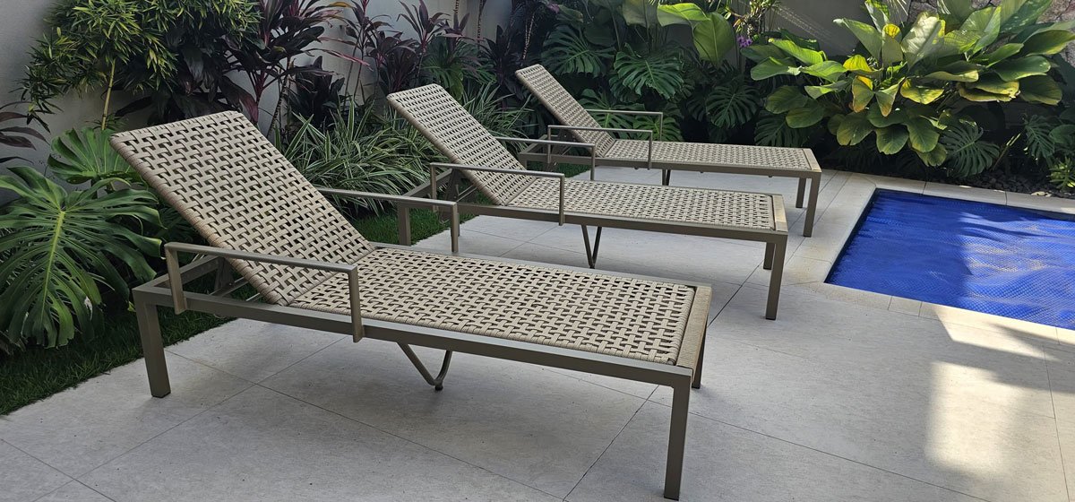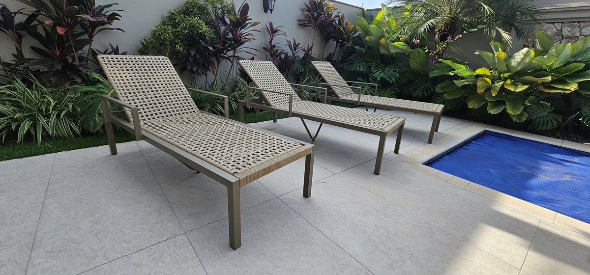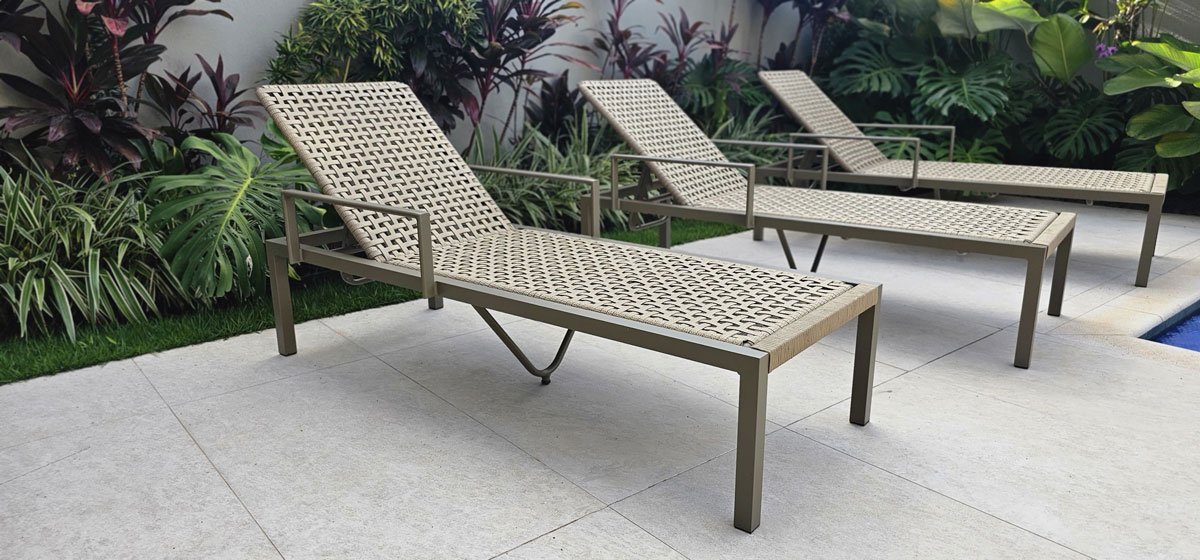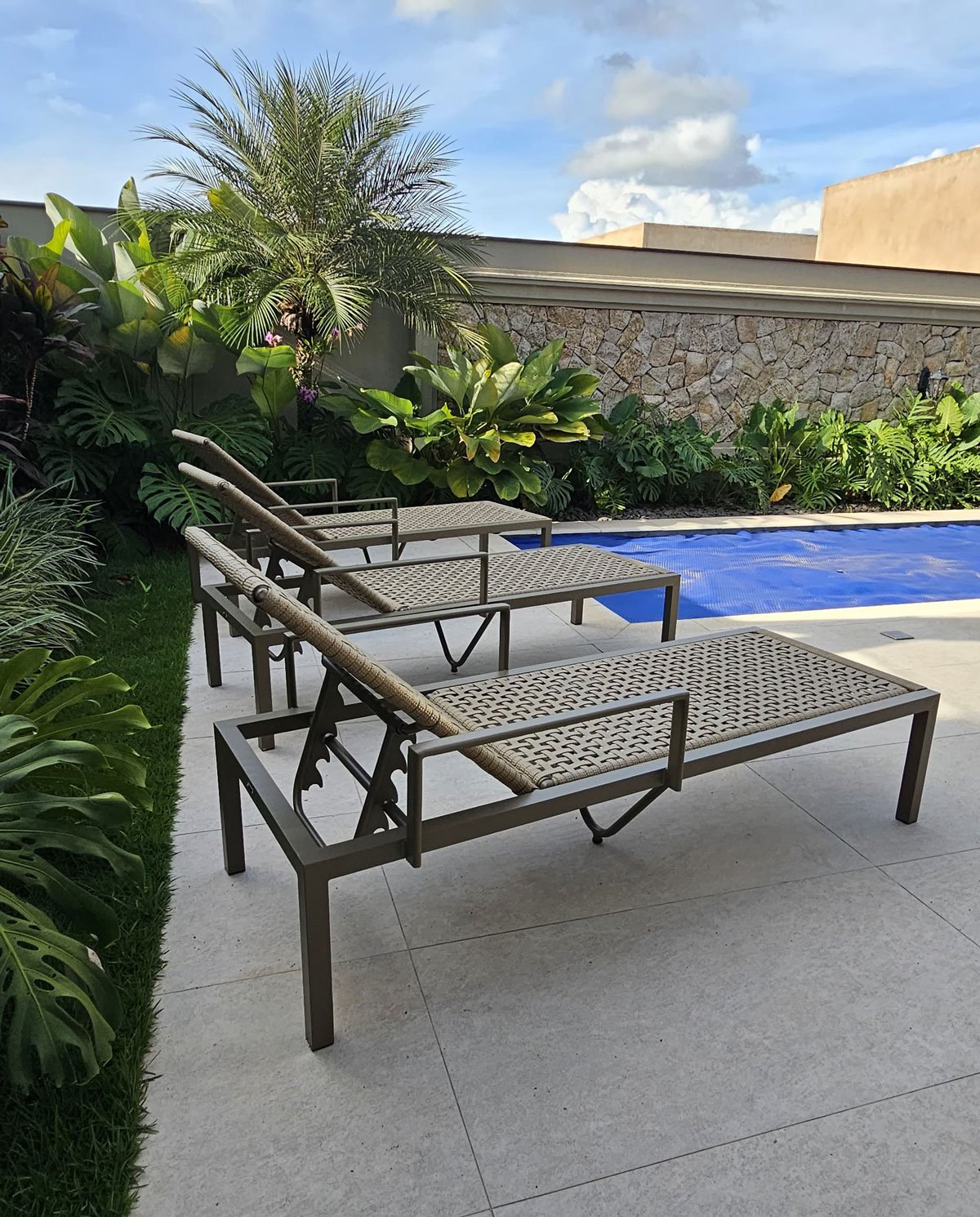 Para relaxar ao sol com conforto e sofisticação. Nossas espreguiçadeiras são projetadas para oferecer o máximo de bem-estar em áreas externas. Com design ergonômico, materiais resistentes ao tempo e acabamento sob medida, elas combinam elegância e funcionalidade — perfeitas para piscinas, decks ou varandas com estilo.
