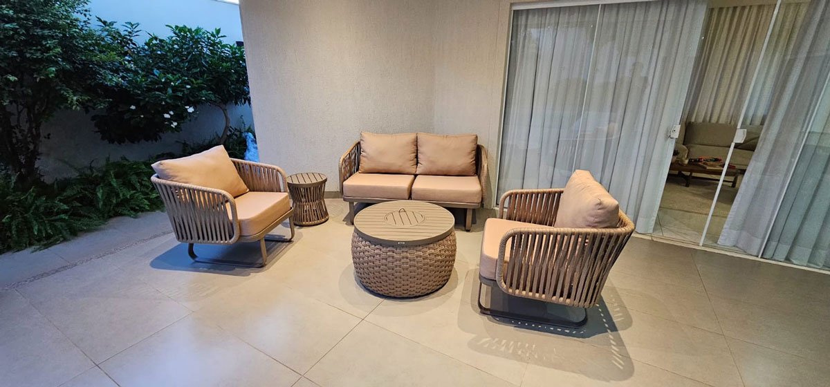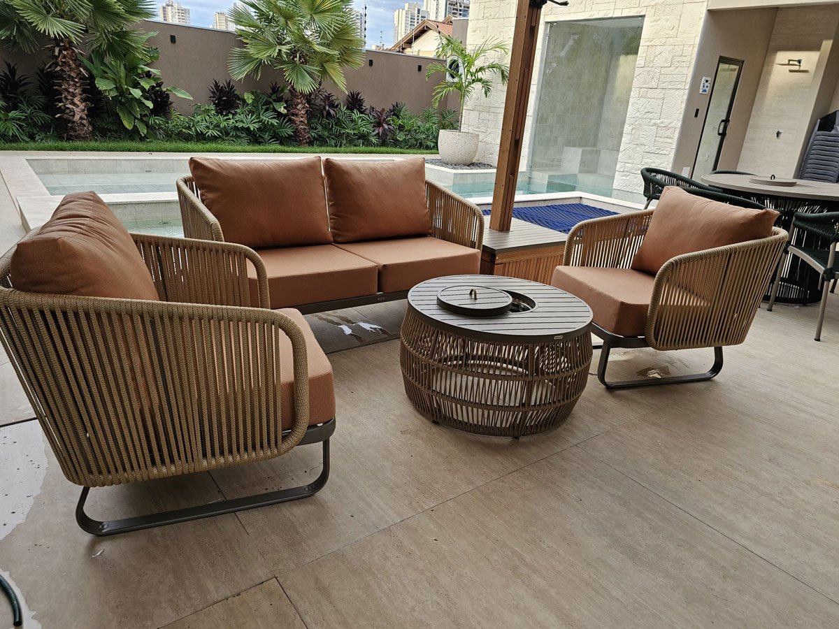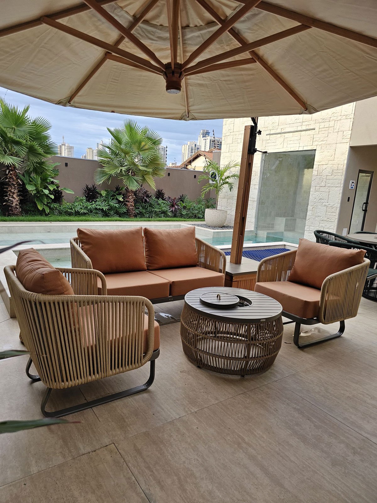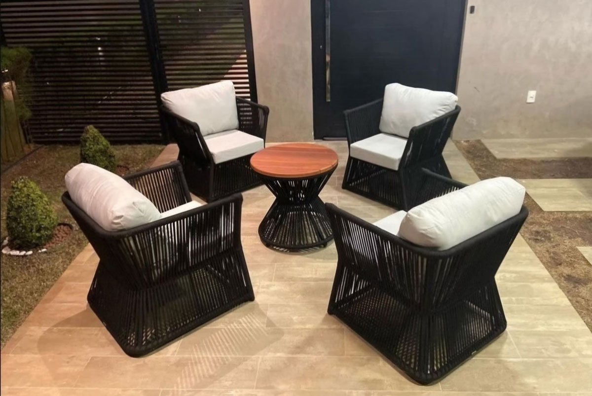 Conforto e estilo sob medida para áreas externas. Nossos sofás e poltronas são projetados para oferecer bem-estar, durabilidade e um design que valoriza cada detalhe. Com materiais resistentes ao tempo e acabamento de alto padrão, são ideais para transformar varandas, decks e jardins em espaços aconchegantes e sofisticados.