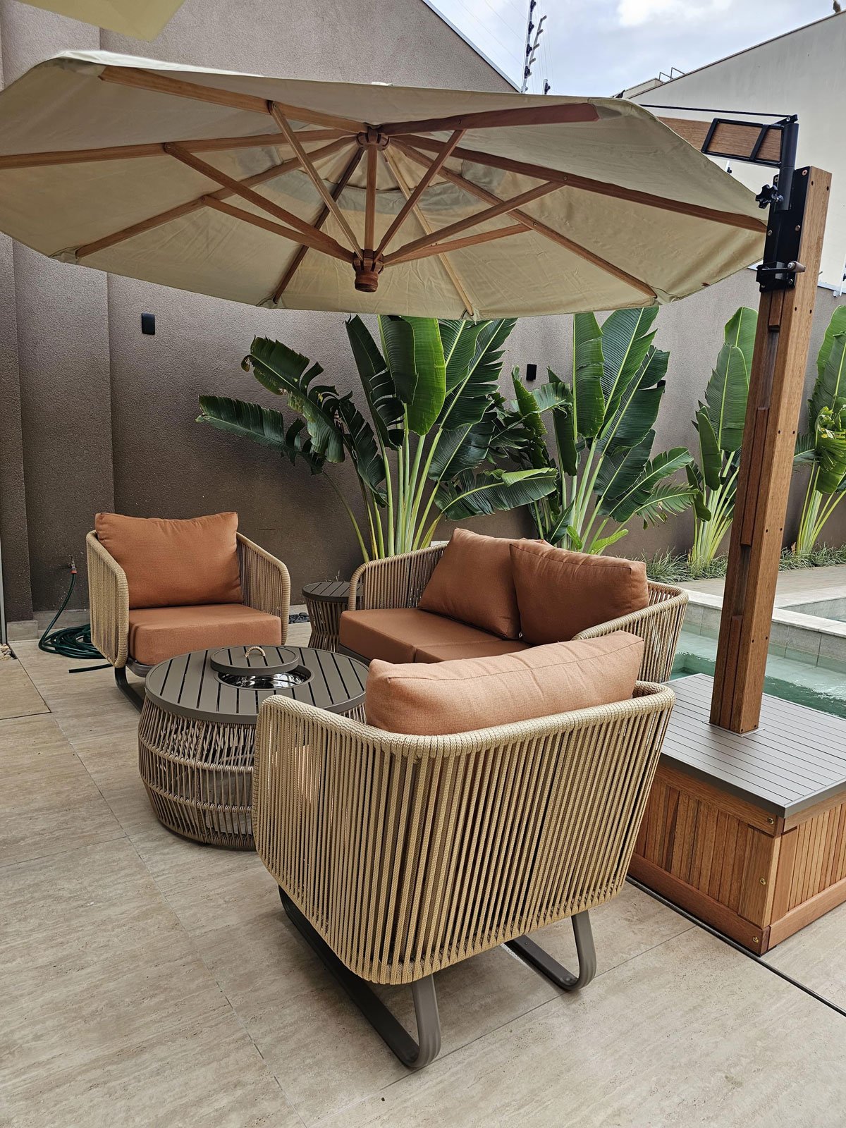 Sombra na medida certa com design que valoriza seu espaço. Os ombrelones da Fort Design são ideais para proteger do sol com estilo e praticidade. Produzidos com materiais de alta resistência e estrutura robusta, eles garantem conforto térmico e valorizam a composição de áreas externas como varandas, decks e espaços de lazer. Beleza, funcionalidade e durabilidade em perfeita sintonia.